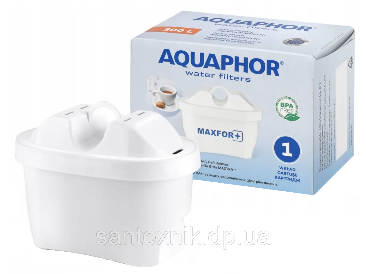 Новий картридж фільтра Аквафор Максфор+ (плюс) призначений для фільтрації води в популярних фільтрах-глечиках АКВАФОР, BRITA, DAFI
