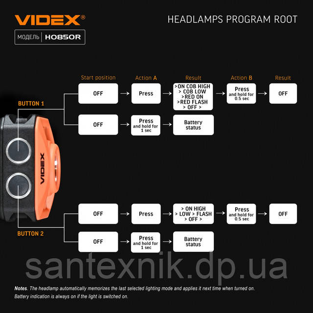 Показати оптові ціниНалобний ліхтарик Videx VLF-H085-OR 400 Lm 5000K